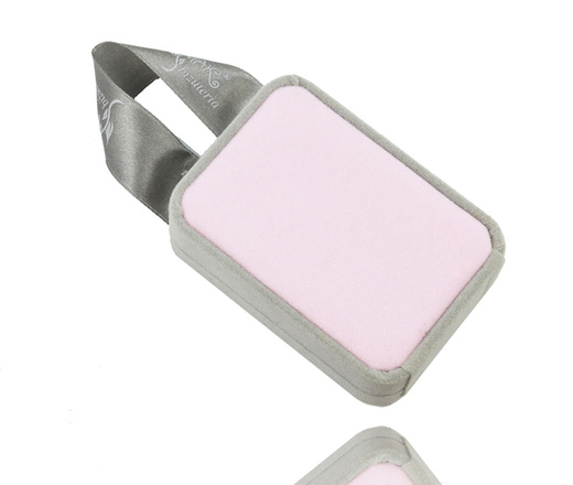 Pudełko /torebka welurowe różowo-szare ze wstążką z logo