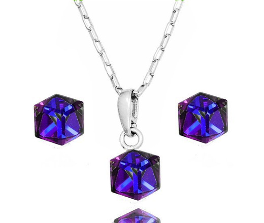 1230 komplet Swarovski Elements srebro 925 kostki fioletowy