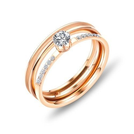 599/965 pierścionek z cyrkoniami stal różowe złoto