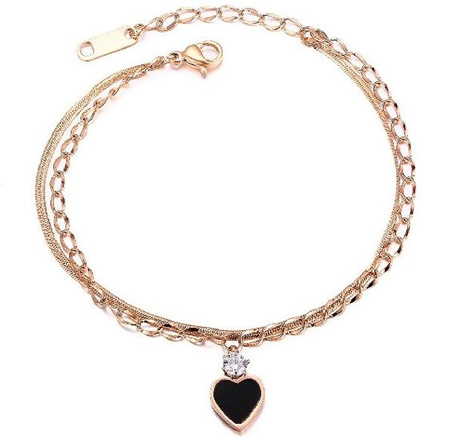 1083 BRANSOLETKA na stopę, różowe złoto serduszko love