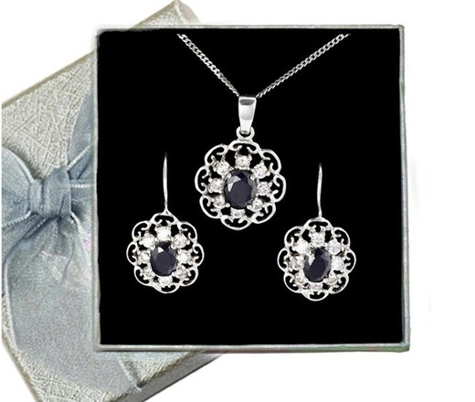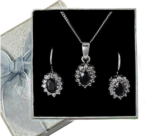 480/245 komplet srebrny z czarnymi cyrkoniami