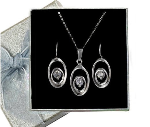 480/191 komplet srebrny w owalną cyrkonią