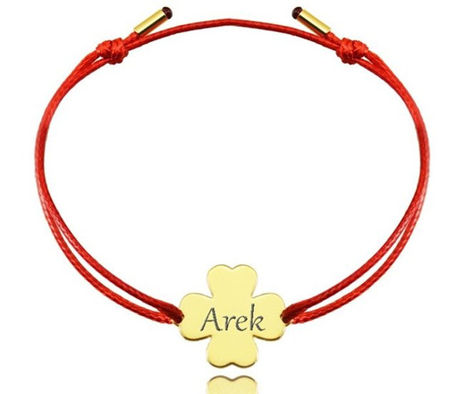 1053 BRANSOLETKA Z GRAWEREM koniczynka srebro złotcone na sznureczku