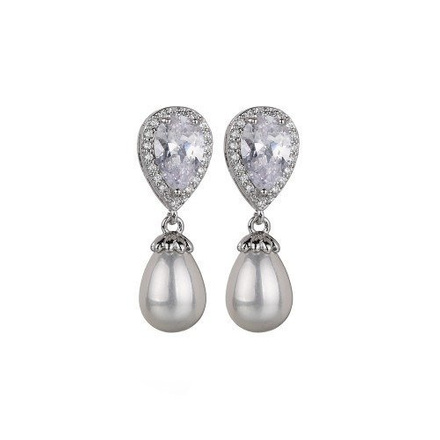 KOL 599/874 KOLCZYKI srebrne wysadzane cyrkonia łezka z perłą