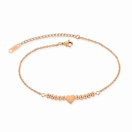 Br 599/835 BRANSOLETKA złota na stopę stalowa serce kuleczki