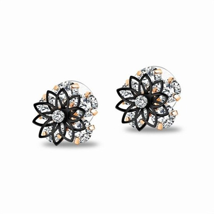Kol 599/772 KOLCZYKI kwiat lotosu, wysadzany cyrkoniami, z czarnym elementem