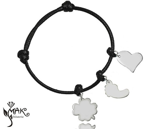 BR835 BRANSOLETKA koniczynka srebrna sznurek
