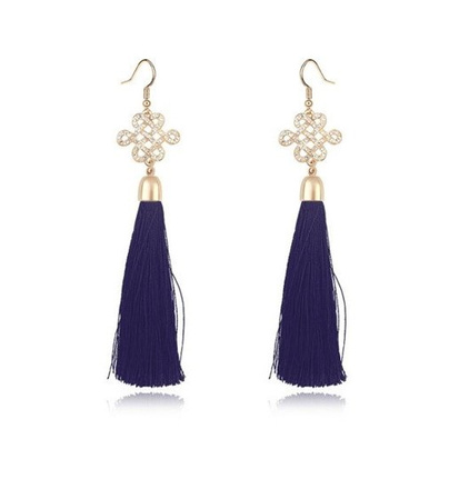 Kol 599/747 KOLCZYKI złote, granatowe frędzle, chwosty