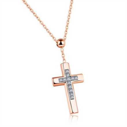 Nk 599/728 NASZYJNIK ze stali krzyż cyrkonie różowe złoto
