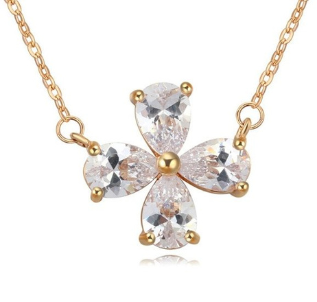 NK599/454 NASZYJNIK żółte złoto cyrkonie koniczynka