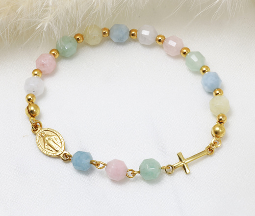 Bransoletka srebrna 925 pozłacana różaniec morganit 1808/2