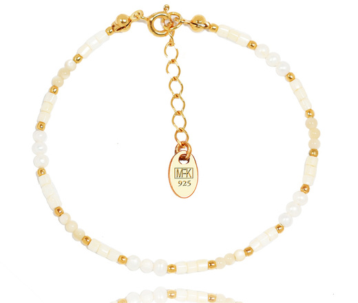 1373/9 bransoletka srebrna 925 pozłacana perełki śmietankowa