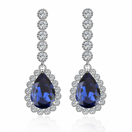Kol 599/1025 kolczyki ślubne, cyrkonie niebieskie długie