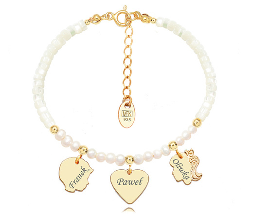 1396 Bransoletka z grawerem z perłami srebro 925 pozłacane