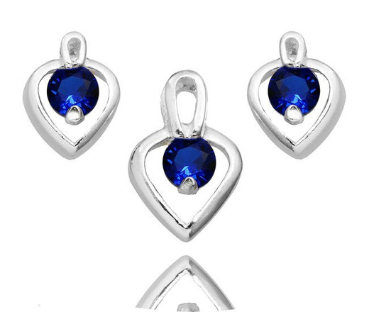 480/359 komplet srebrny 925 serca, cyrkonia niebieska kolczyki wisiorek