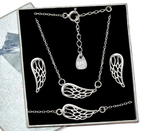 1135 skrzydełka skrzydła komplet srebrny celebrytka srebro 925