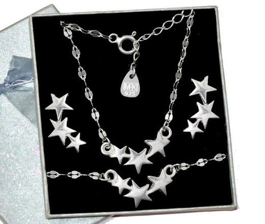 1136 gwiazdki komplet srebrny 925 celebrytka naszyjnik kolczyki bransoletka