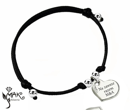 BR823 /2 BRANSOLETKA z grawerem na sznureczku serce