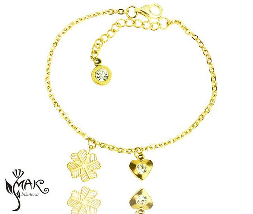 BR845 BRANSOLETKA koniczynka ażurowa złocona