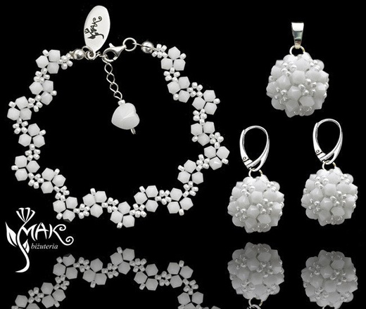 KPL421/2 PIĘKNY KOMPLET PEREŁKI BRANSOLETKA+KOLCZYKI - ŚLUB