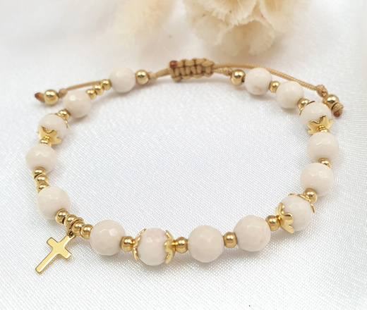 1671/13 bransoletka różaniec z kamieniem rzecznym pozłacana