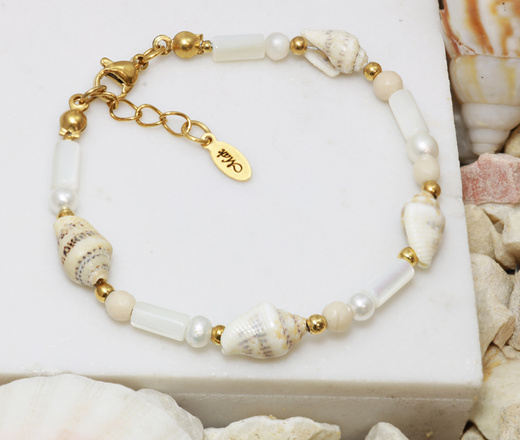 bransoletka ze stali z muszelek, pereł i kamieni naturalnych 1835
