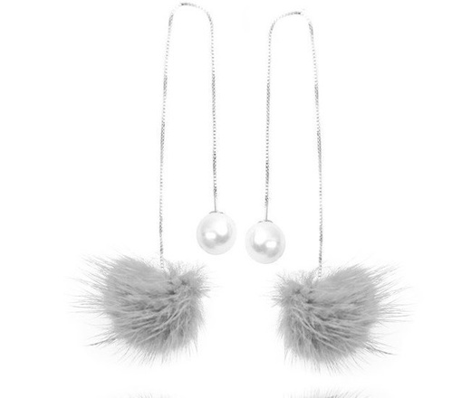 Kol 599/858 KOLCZYKI futerka, pompony długie szare z perłą