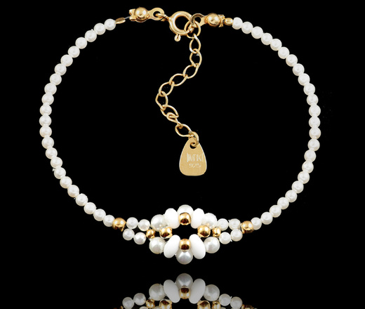 1507 bransoletka srebrna pozłacana z perełkami na ślub