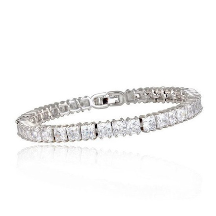 Br599/803 delikatna BRANSOLETKA ślubna z postokątnymi cyrkoniami