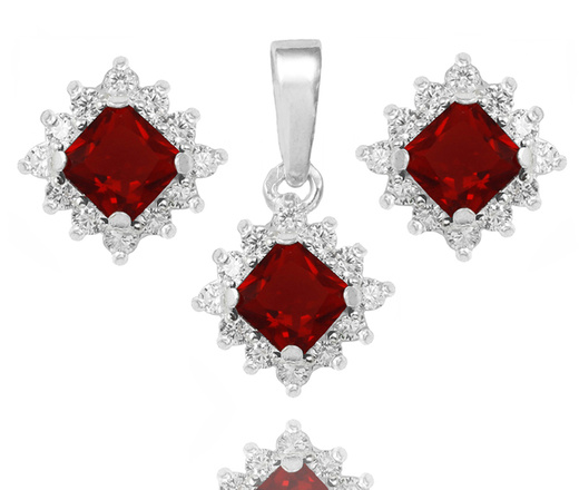 480/487 komplet srebrno 925 wisiorek z kolczykami z czerwonymi cyrkoniami