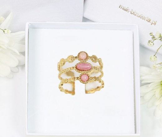 1726/2 potrójny złocony pierścionek z rodonitem regulowany