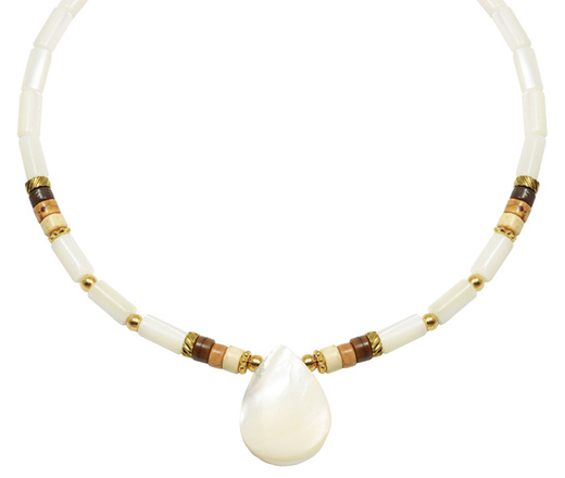 1673/3 pastelowy naszyjnik z kamieniami naturalnymi oraz grawerowaną koniczynką, pozłacany