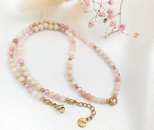 1684 naszyjnik kamienie naturalne różowa cyrkonia
