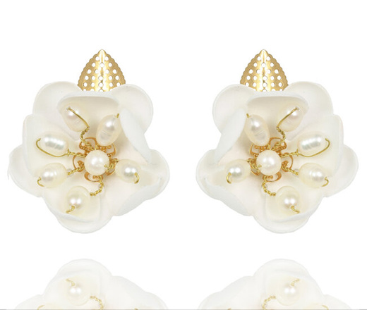 1663 kolczyki ślubne pozłacane perły z kwiatami