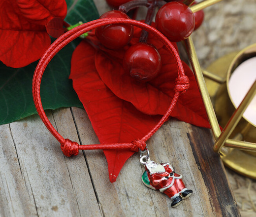1596/19 bransoletka charms na sznureczku srebrzona świąteczna Mikołaj