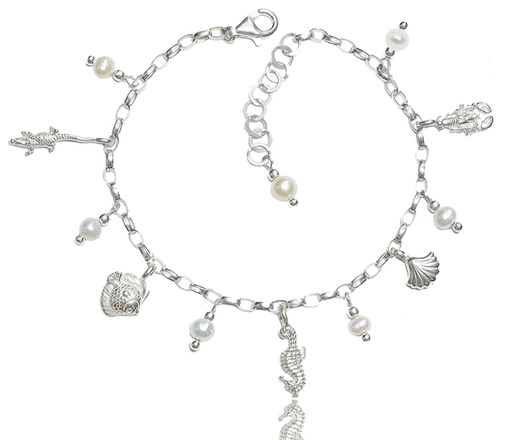 1383/4 bransoletka srebrna 925 perełki naturalne motywy morskie