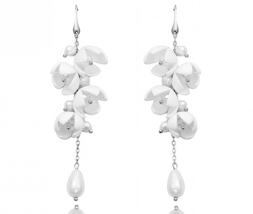 ręcznie robione kolczyki ślubne z kwiatami, kryształami i perłami srebro 925 1816/5