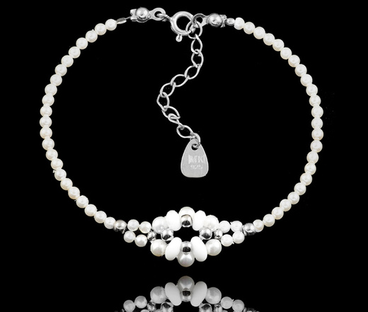 1499 bransoletka srebrna 925 z kwiatuszkami masa perłowa