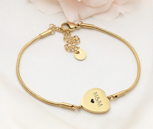 Złota bransoletka z grawerem, serduszkiem i 1849