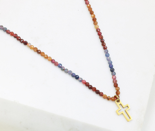 Naszyjnik z krzyżem i kamieniami naturalnymi (rubinowy szafir) 1799/6