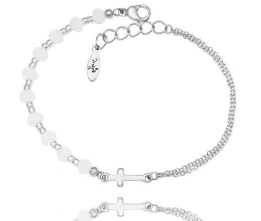 1571/22 bransoletka różaniec srebro 925 z kryształkami i krzyżem