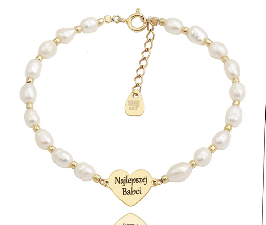 1607 Bransoletka dla babci z grawerem z perłami srebro 925 pozłacane