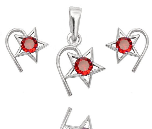 480/410 Komplet srebrny 925, gwiazdki z czerwoną cyrkonią , kolczyki, wisiorek .