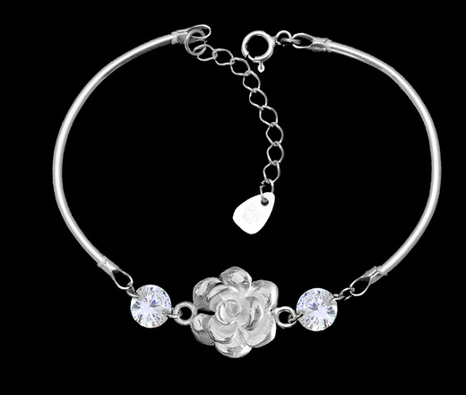 1655 bransoletka srebrna 925 różą z cyrkoniami