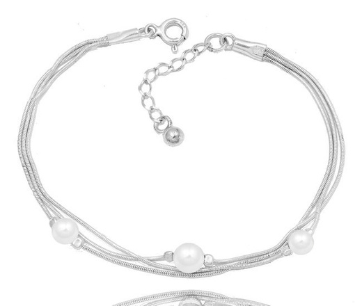 1268 bransoletka srebrna 925 potrójna perełki