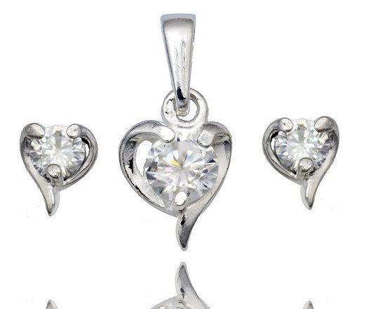 480/347 komplet srebrny 925 serca z cyrkonią kolczyki wisiorek