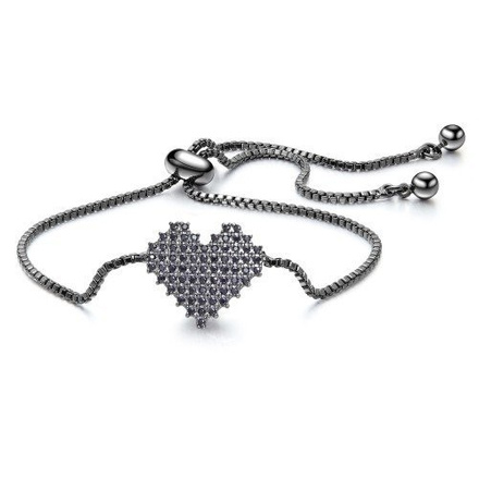 BR599/890 czarny rod CYRKONIE BRANSOLETKA serce piksele