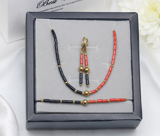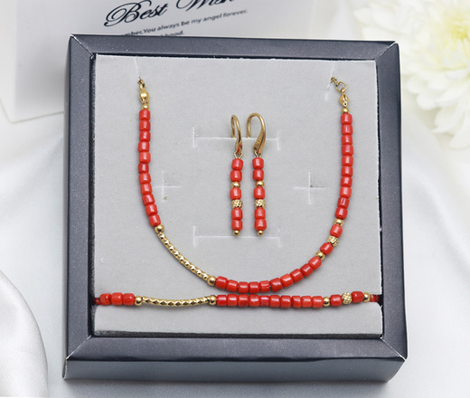 Elegancki bordowy komplet złocony z granatem 1875/3