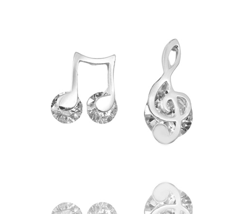 1861/1 kolczyki wkrętki z nutą i kluczem wiolinowym wysadzane cyrkoniami, srebro 925