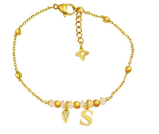 1232/10 bransoletka złota stalowa z inicjałem literką oraz skrzydełkiem